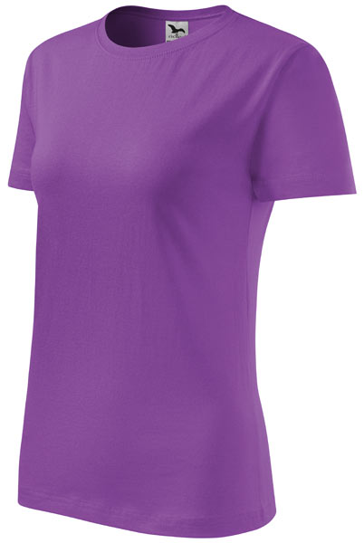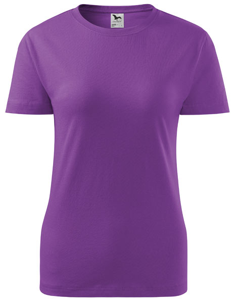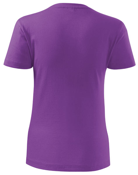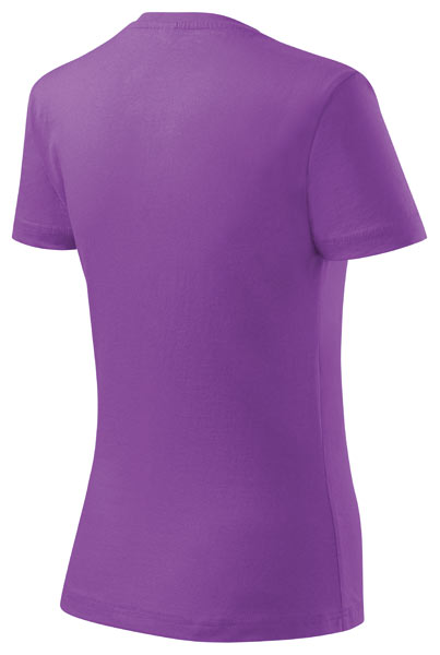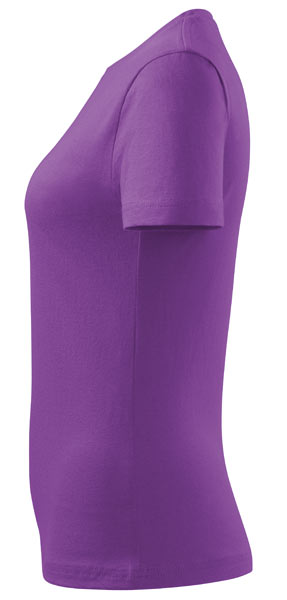 Koszulka damska wysokiej jakości o średniej gramaturze. Krój podkreślający damską sylwetkę. Wąska lamówka ze splotu żeberkowego z dodatkiem 5% elastanu. Taśma wzmacniająca na ramionach. Uzupełnienie męskiego modelu koszulki Basic. Świetnie nadaje się pod haft i nadruk.